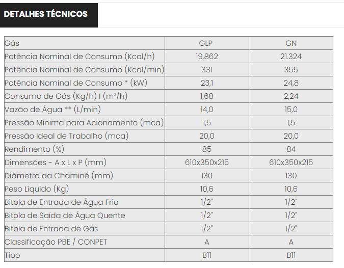 Aquecedor a gas 1800 / linha exaustão natural