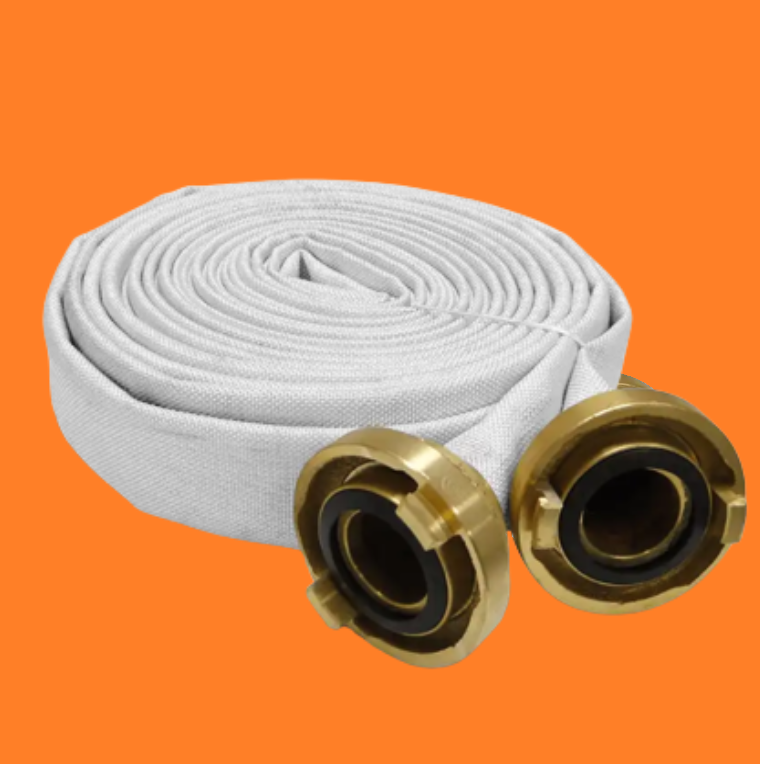 -15%A mangueira de incêndio é construída externamente com reforço têxtil simples em fibra de 100% poliéster e internamente por um composto de borracha sintética vulcanizada diretamente ao tecido.